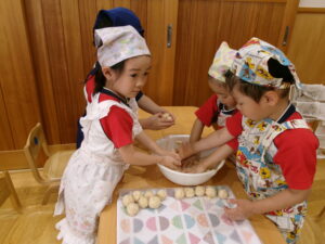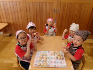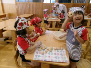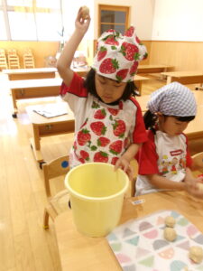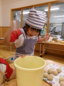 まるめた玉をエイっ!!