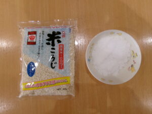 塩と米こうじを入れて混ぜます