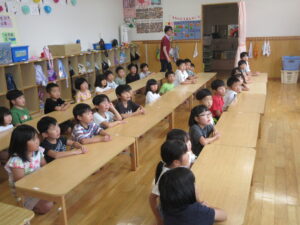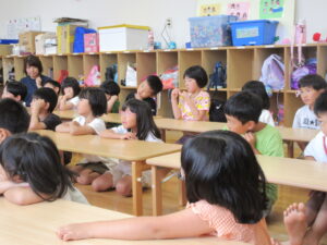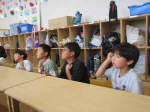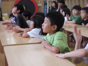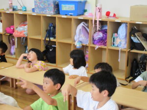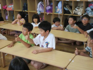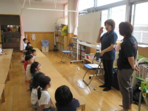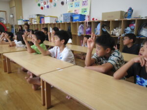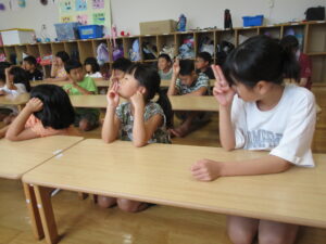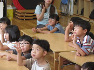 手や指、表情で気持ちを「つたえる」って楽しい!日常的なあいさつなどの簡単な手話を体験することができました。終わってから…子どもたちは自分の名前の手話を披露してくれました✋