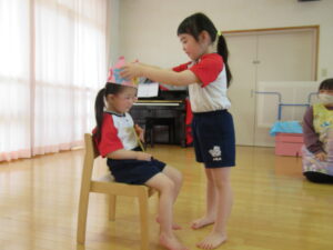 就学前児の子どもたちから、手作り王冠のプレゼントです✩
