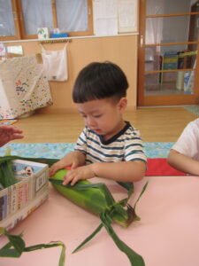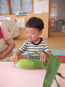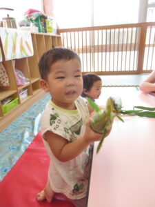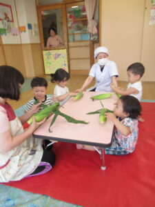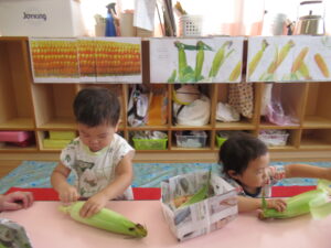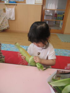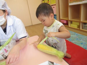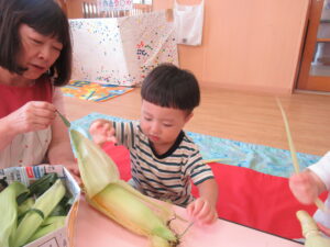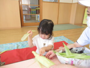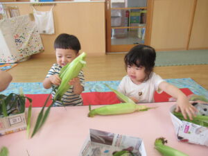 とうもろこしの皮むきをしたよ🌽~うさぎ組さん~