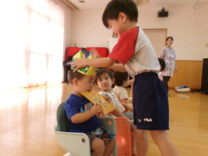 ぱんだ組さんがお祝いのかんむりを作ってくれました!