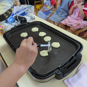 ホットケーキの生地を混ぜて焼くよ~