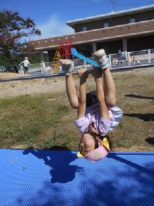 しばらくの間お休みしていた園庭遊具の修繕が終わり、いよいよ遊べる日がやって来ました。遊ぶ前に、みんなで遊ぶ時のルールを再確認しましたよ。登ったり、すべったり、ぶら下がったり、逆上がりや前回りをしたり、全身を使って楽しむ子どもたちでした。これからも、みんなで園庭遊具で遊ぶ時のルールを確認しながら、安全に遊びたいと思います。