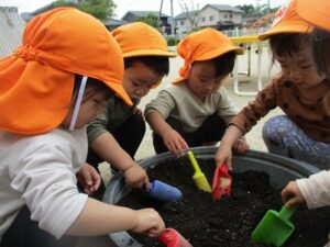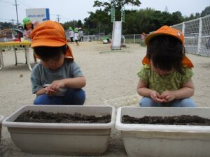 - 可愛い手で、朝顔の種を植えてくれています♪
