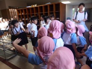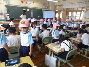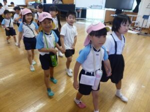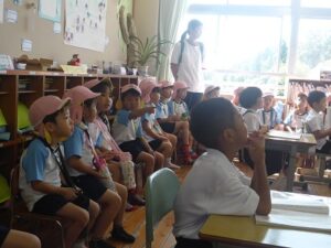 9/26(木)、ぞう組さんが小学校訪問をしました。『小学校ってどんなところかな?』『どんなことをするのかな?』と、来年の春、1年生になるぞう組さんは、ワクワクした気持ちいっぱいで小学校を訪問させてもらいました。1年生の教室にもお邪魔し、国語の授業を見学!お兄さん、お姉さんが授業を受ける姿を見て、一緒に真剣なまなざしになるぞう組さんでした。そして、授業の後は1年生が『小学校ではこんなことをするよ♪』と、絵とお話しで教えてくれました。一緒にゲームをしたり、手をつないでもらったり、ますます小学校に行くことが楽しみになったみんなでした。