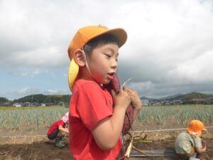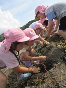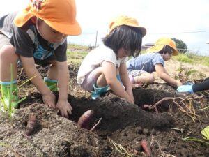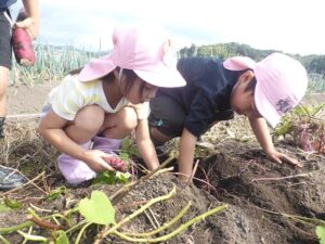 サツマイモはクッキングに使ったり、焼き芋パーティーで食べる予定です。今からとっても楽しみにしているみんなです。