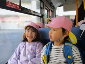 行きはルンルンのぞう組さんも、帰りは少々お疲れモードでしたが、しっかり保育園までバスと徒歩で帰ることが出来ましたよ!友だちと一緒に沢山の発見をして、言葉で伝え合って、喜び合って、また一つ想い出が増えたね。