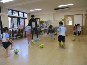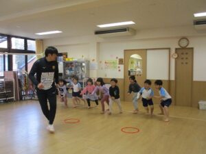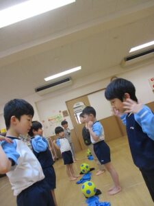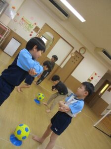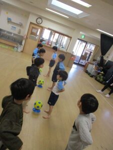 ぞう組さんが、保育園最後のボール教室に参加しました。夏から、ふなちゃん先生とボールを使っていろいろなゲームを楽しんで来ました。みんなふなちゃん先生の話しをよく聞いて、ルールを守り遊ぶ楽しさを感じることが出来たね!ボールを使って、手や足、体全体を動かし楽しむみんなの顔はとってもいきいきしていましたよ。ボールを使って遊ぶことが、ますます好きになったね。