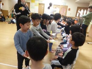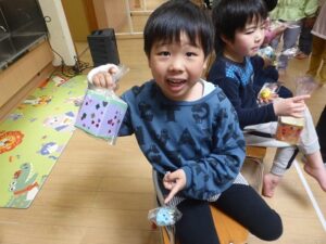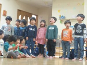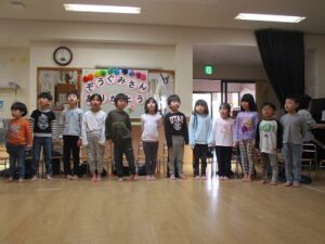 3/12(水)、もうすぐ育了するぞう組さんを送る会がありました。司会進行は、一つ下のクラスのきりん組さんがしてくれました。普段から優しく遊んだりお世話をしたりしてくれたぞう組さんに、みんなで「ありがとう♡」を伝えましたよ。主役のぞう組さん、司会進行をしてくれたきりん組さんも、ドキドキ緊張した表情!その緊張もいつの間にか楽しさに変わっていました。一緒にゲームをしたり、プレゼント交換をしたりして、嬉しい♡楽しい♡時間をみんなで過ごしました。