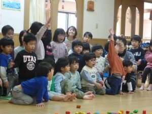 - クラス対抗お片付けゲーム!両手をいっぱいに広げて集めてくれたこあら組さん!