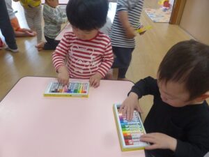 今日は、こあら組さんとうさぎ組さんのお部屋での様子をのぞいてみました!