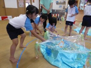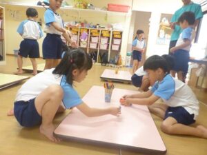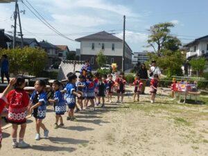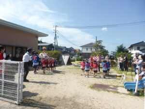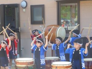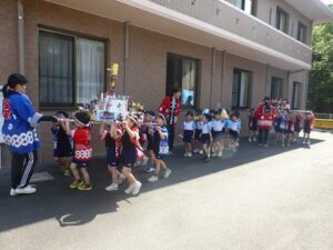 今日は、ぞう・きりん組さんの夏まつりがありました。オープニングを飾ってくれたのは、ぞう組さんのお神輿ときりん組さんのお囃子!「わっしょい!わっしょい!」と、みんなのにぎやかな声が青空に響いていました。沢山練習した和太鼓も、おうちの人に見てもらえて嬉しそうなぞう組さん。今までで一番みんなのパワーが伝わってくる和太鼓の音でした。夏まつり1日目、子どもたちの嬉しい笑顔がいっぱいの一日になりました。明日も楽しみだね♬
