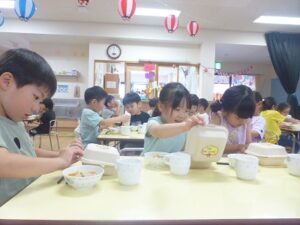 - 給食はぞう組さん発案の“唐揚げパン”!