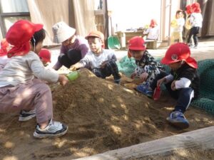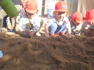 こあら組さんは園庭で宝探し!掘って掘って、「あったー!!」と嬉しそうに宝物を見せてくれたこあら組さんでした。