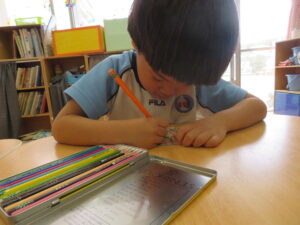 エルマーからのお手紙が入っていました。「ぼくの色を完成させてね。」