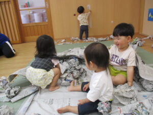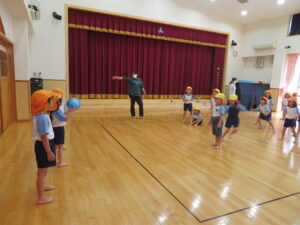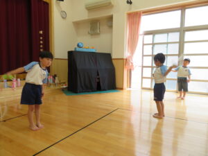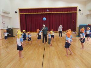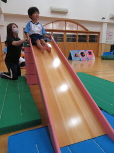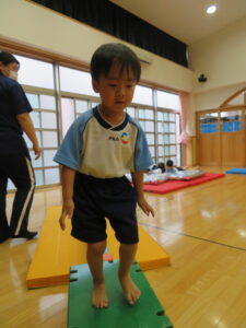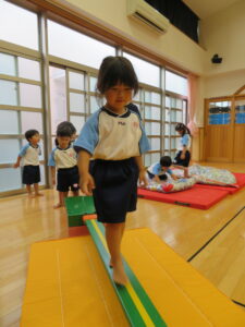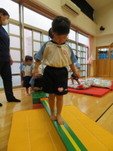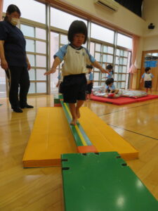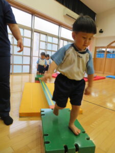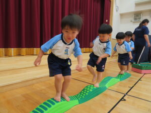 遊戯室で運動遊びをしました。