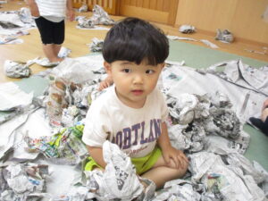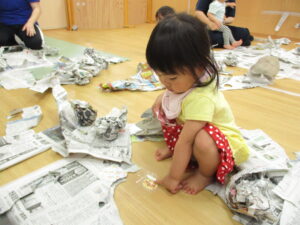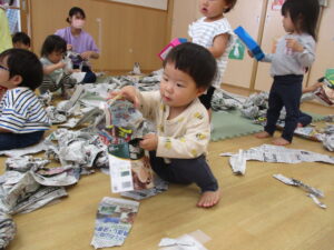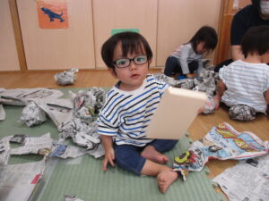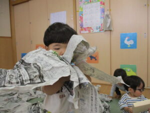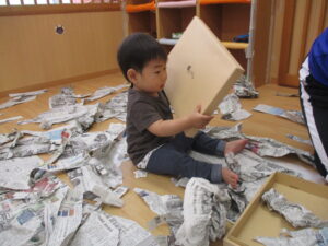 新聞紙、ビリビリ…