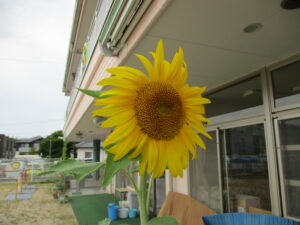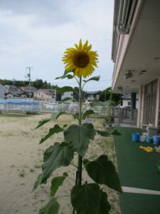 2023.08.08 ついに…🌻 咲きました~!!園庭のプランターで育てている向日葵さん🌻 ぞう組さんの担任が毎日欠かさず水やりをしてくれ、酷暑の中でもすくすくと大きくなり、きれいな花を咲かせてくれました。今日はプール遊びをする子どもたちをそっと見守ってくれていましたよ(^-^) < 前の記事へ | 次の記事へ >