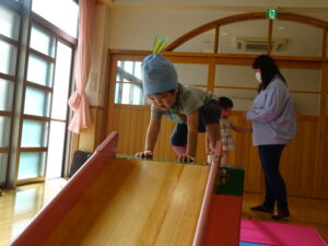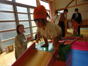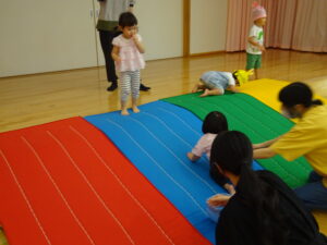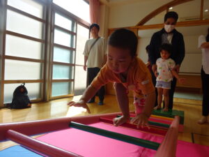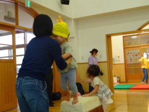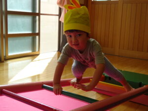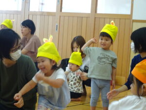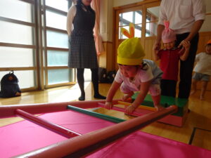 10月6日(金)にうさぎ組さんのミニ運動会がありました。お家の方にかけっこやサーキット遊びを見てもらったり、一緒にダンスをしたりして楽しい時間を過ごしました。「今日もかけっこするー」と張り切る姿や、「うさぎさんでもこんなことできるんだ!」とお家の方が驚くような姿などなど…色々な姿を見せてくれていました。先生やおともだちと普段どんなふうに接しているのか分かりとてもいい機会でしたとの感想もいただきました。笑顔たくさんのステキな時間になりました。ご参加いただいた保護者の皆様、ありがとうございました。