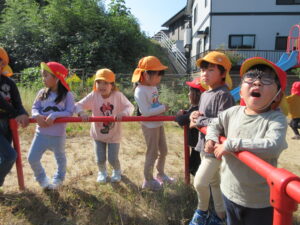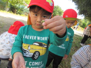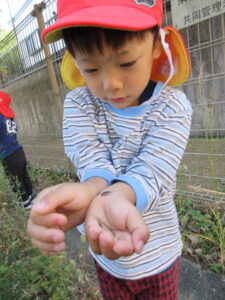 2023.11.07 とねり公園に行ったよ☆こあら・ぞう組(10/18) 秋の気持ちの良い青空の広がる日、こあらさんとぞう組さんで一緒にとねり公園までお散歩に行きました♪ぞう組さんがしっかりと手をつないで、こあら組さんをリードしてくれていました。公園では保育園にはいない虫や草花がいっぱい(^-^)みんなでしゃがんで虫探しをしたり、見つけた虫を優しく手に取って眺めたり、たくさん走り回って鬼ごっこをしたり…すべり台とぶらんこも人気でしたよ。また遊びに行こうね。 < 前の記事へ | 次の記事へ >