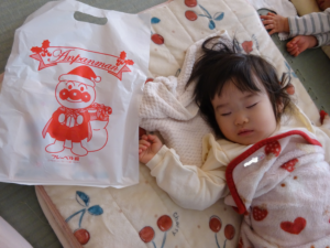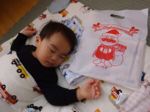 2023.12.25 寝ている間に…🎅🎁ひよこ組(12/25) 今日はクリスマス🎄午前中はクリスマス会に参加しました。そして、給食を食べ、すやすやと気持ちよさそうにお昼寝をしているひよこ組さん。寝ている間に、サンタさんがプレゼントをくれたようですね(^-^) < 前の記事へ | 次の記事へ >