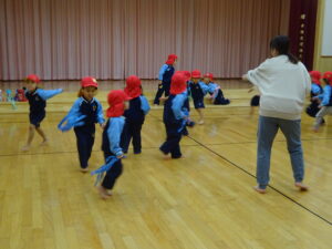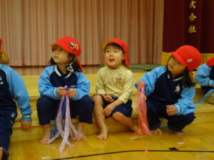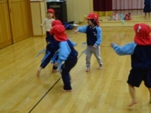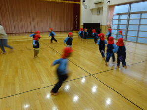 今日は遊戯室でしっぽ取りゲームをしました。まず、自分のお尻にしっぽをつけて、最初は遊戯室を走りっこ♪先生の「よーい、ドン!」のかけ声でしっぽ取りスタート!自分のしっぽを守りながら、お友だちのしっぽを狙いに行きます(^-^)たくさん走って体もポカポカになりました☆また、遊ぼうね。