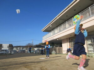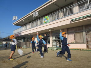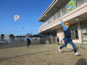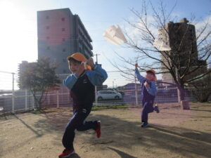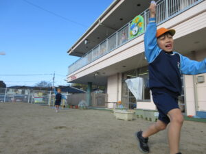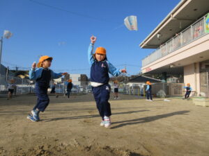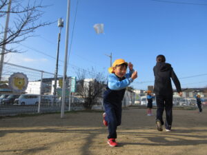 2024.01.06 た~こた~こ、あ~がれ~♪ぞう組(1/5) 年末年始のお休みも明けて、保育園ににぎやかな子どもたちの姿が戻ってきました。昨日は良いお天気。さっそくぞう組さんが園庭で凧あげをしていましたよ(^-^)きれいな青空に嬉しそうに凧がおよいでいます♪気持ちの良い1年のスタートです☆ < 前の記事へ | 次の記事へ >