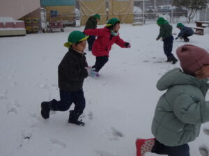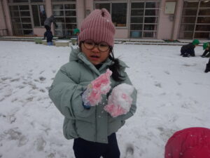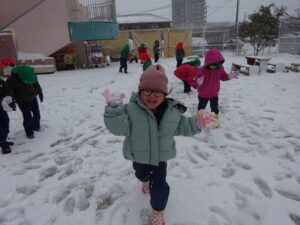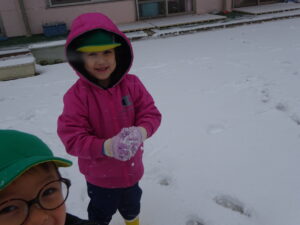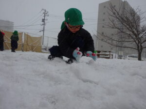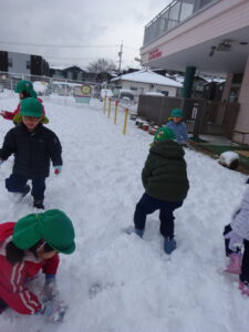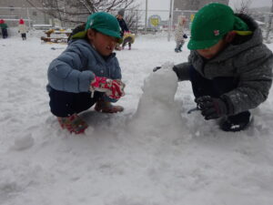 今週はたくさん雪で遊ぶことができて、冬を満喫できました。寒くてもへっちゃらなきりん組さんです♪