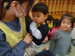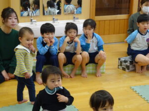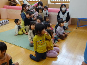 3月8日(金)にひよこ、りす組のお友達の誕生会がありました。ぞうぐみさんからの歌のプレゼントを聴いたり、先生からの出し物で大型絵本やパネルシアターを見て楽しみましたよ♪ 3月生まれさんお誕生日おめでとう🎂!