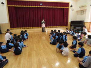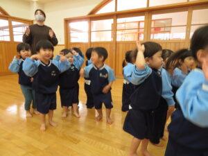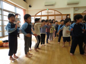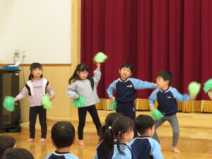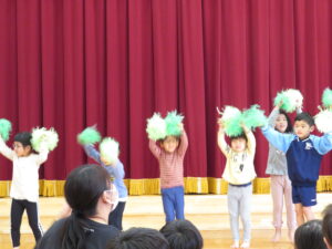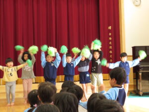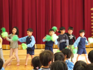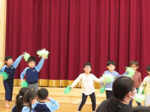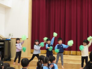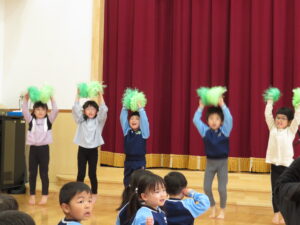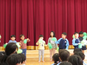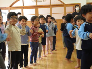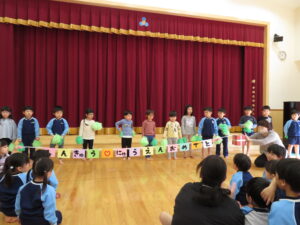 2024.04.03 入園進級お祝い会☆(4/2) 4月2日に幼児部さんで入園進級お祝い会を行いました。新しいお友だちや先生の紹介をしてもらい、ぞう組さんがお祝いのダンスを披露してくれました♪その後、「どうぶつ列車🐰🐵🐭🐊」の新しい体操を教えてもらって、みんなで踊って楽しい時間を過ごしましたよ。これから一緒にたくさん遊びましょうね(^-^) < 前の記事へ | 次の記事へ >