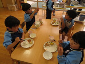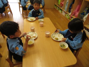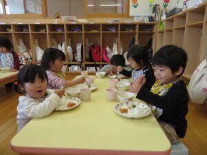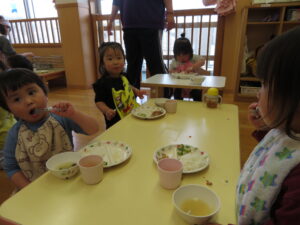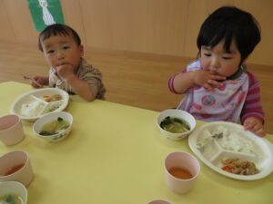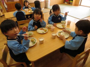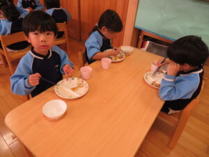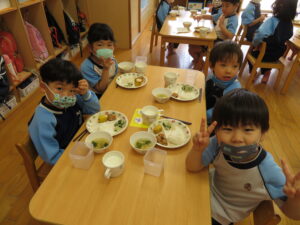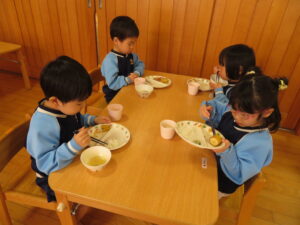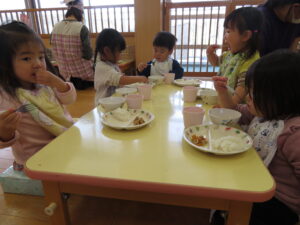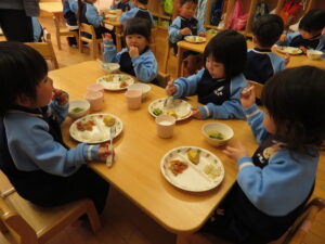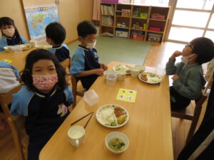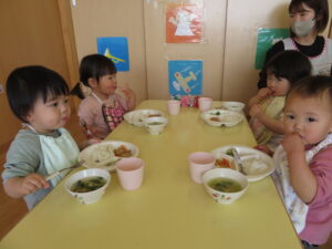 2024.04.06 新年度が始まって…☆ 新年度が始まって、進級した喜びを感じながら、毎日にぎやかに過ごしている子どもたちです。 給食の様子をちょこっとのぞいてみましたよ(^-^) < 前の記事へ | 次の記事へ >