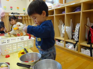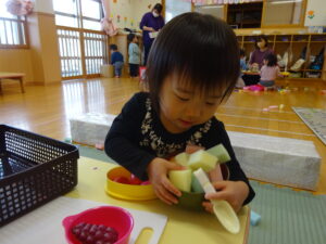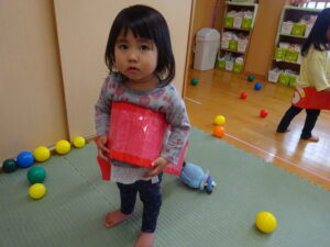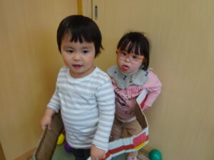 進級して新しいお部屋になりました。ロッカーの位置が変わり少しお兄さんお姉さん気分のうさぎ組さんです♪