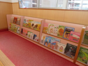 日々、お忙しいとは思いますが、たまにはゆっくりお子さんと絵本タイムはいかがですか?貸出方法は絵本コーナーに掲示しています。お子さんと一緒にお気に入りの絵本を選んでみてくださいね。