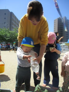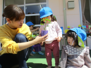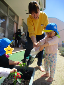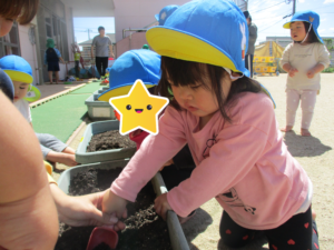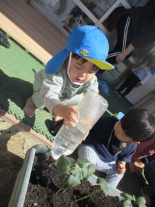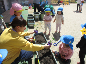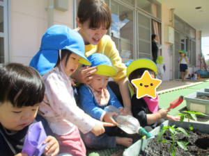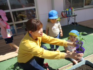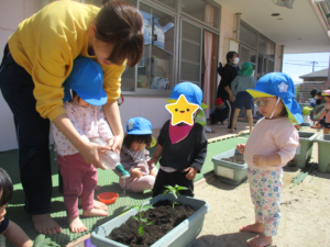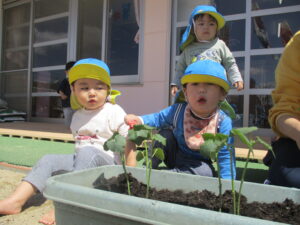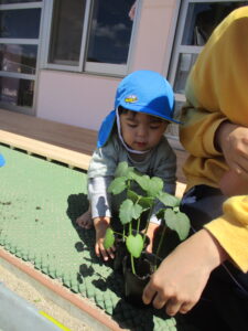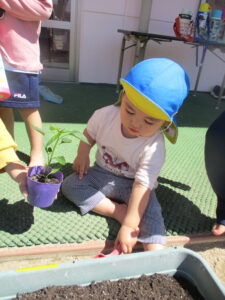 2024.05.11 お野菜の苗を植えたよ☆りす組(5/9) おくらとピーマンの苗を植えました。苗をじーっと見たり、スコップで保育者と一緒に穴を掘ったり。植えた後はしっかりお水やりもしてくれました。大きくなってね(^-^) < 前の記事へ | 次の記事へ >