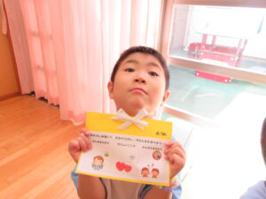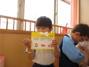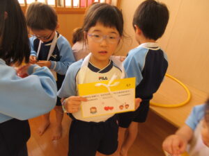 わんぱんくだんの3人からのお手紙…「ロボットのロビンのハートのかけらが保育園のどこかに隠されたんだ。みんなで力を合わせてハートのかけらを見つけてくれないか?」ですって。さぁ、ハートのかけらを探しにみんなで出発です!3つのミッションをクリアすると…何かヒントがもらえそうですよ(^-^)
