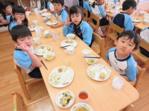 ロビンのハートが無事に見つかってよかったね♡「ロビンにまた会えるかなぁ~」と言いながら、次は夕食の材料を買いに近くのスーパーへお買い物へ行きます♪2グループに分かれてリストを見ながらお買い物です。どこに何が置いてあるか、分かるかな…?