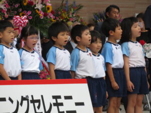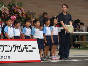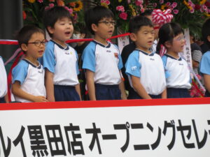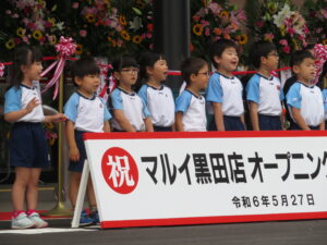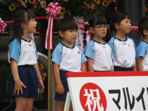 今日はマルイさんのオープニングセレモニーに参加してきました。雨を心配していましたが、子どもたちのパワーが伝わり雨も降らず、無事に出番を終えることができました。子どもたちの可愛い姿に拍手をたくさんいただきました。終わった後は、プレゼントもいただき、子どもたちも大喜び!いい思い出が一つ増えました!TSKさん、マルイさん、ありがとうございました(^-^)見に来ていただいた保護者の方もありがとうございました☆また、みんなでお買い物に行こうね。