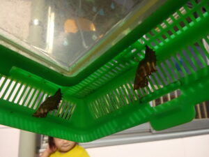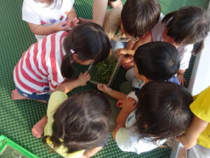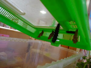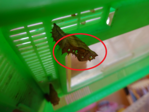 うさぎ組で飼っている?!ツマグロヒョウモンの🐛さん。さなぎになりました!よ~くみると、さなぎのお腹部分はキラキラと光って見えます✨天敵から身を守るためだそうですよ。さぁ、もう少しでちょうちょです🦋