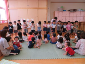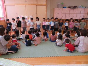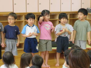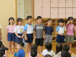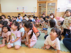 2024.08.03 7月誕生会☆あひる・りす・うさぎ組 7月の誕生会の様子です。ぞう組さんは「ミックスジュース」の歌を歌ってくれました♪先生からの出し物はスケッチブックシアター☆虫めがねで見えているものを想像したり、考えたりしながら楽しみましたよ。7月生まれさん、お誕生日おめでとう👑 < 前の記事へ | 次の記事へ >