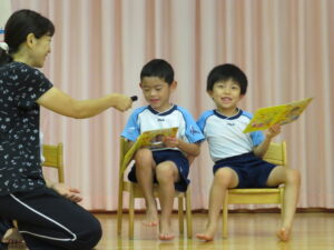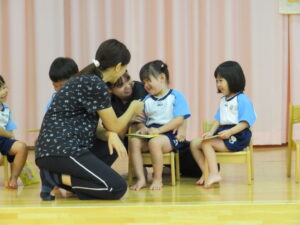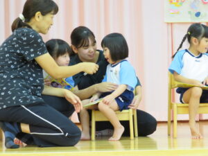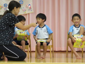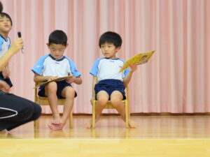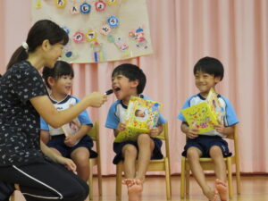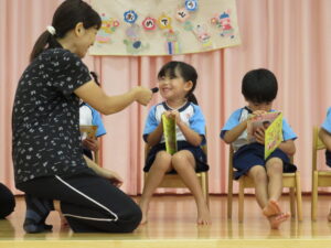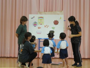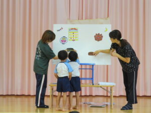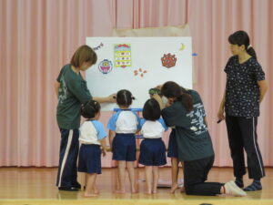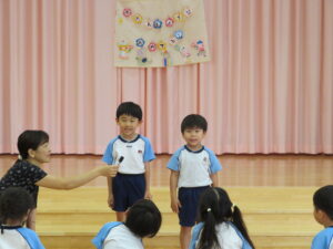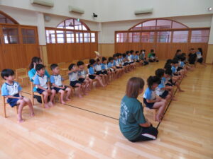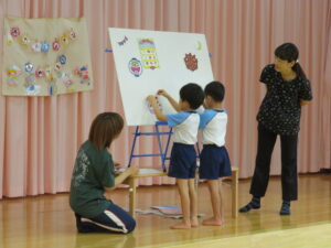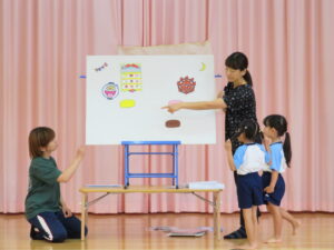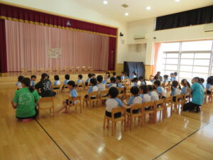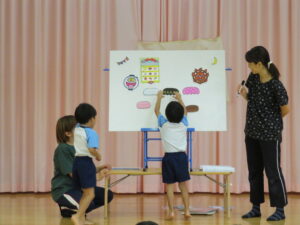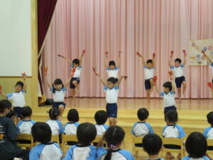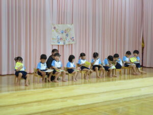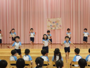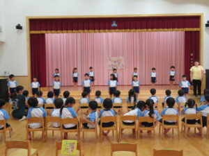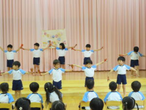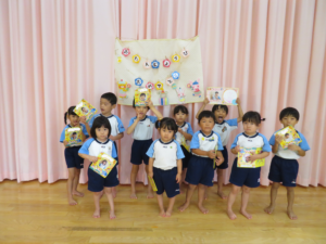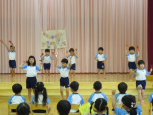 8月の幼児部さんの誕生会です。10人の8月生まれさんをお祝いしました。ぞう組さんは夏祭りで踊ったよさこいを見せてくれました。先生たちからのお楽しみは「妖怪運動会」のパネルシアター☆最後は8月生まれさんと一緒にケーキを作りましたよ(^-^)8月生まれさん、お誕生日おめでとう👑