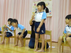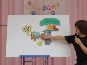 9月の誕生会がありました。ぞう組さんは「おやつた~べよ♪」の手遊びをしてくれ、みんなで真似っこして盛り上がりました。先生からのお楽しみは「どうぞのいす」のパネルシアター♪誕生会バージョンで最後はケーキが出てきましたよ。9月生まれさん、お誕生日おめでとう!
