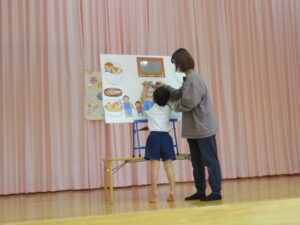 幼児部さんの4月の誕生会がありました。新しいクラスで迎える初めての誕生会!ぞう組さんは、はじめのことばやおわりのことば、歌のプレゼントなど、ぞう組さんとしての役割をドキドキしながらもしっかりと果たしてくれていましたよ(^-^)先生からのお楽しみは「まほうの電子レンジ」でした。「はらぺこりんりん♪」と、みんなで一緒に歌を歌いながら楽しい時間を過ごしました。