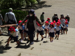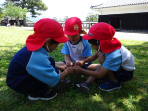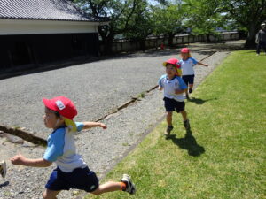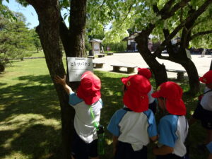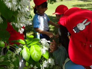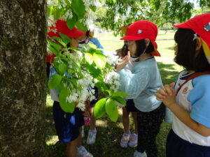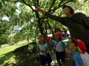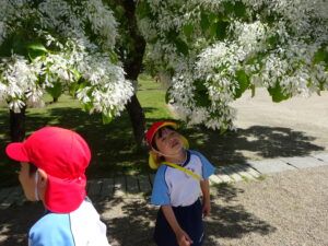 5月8日、この日の天気は晴れ!絶好のなんじゃもんじゃ日和♪ぞう組さん、松江城のなんじゃもんじゃを見に行きました。歩くスピードをぐんぐんあげて、どんどん歩くぞう組さん。あっという間に松江城に到着。すると…満開のなんじゃもんじゃが出迎えてくれました!真っ白いお花が満開✨そしていい匂い(^-^)二の丸の櫓にも上って上からの景色も楽しみましたよ。