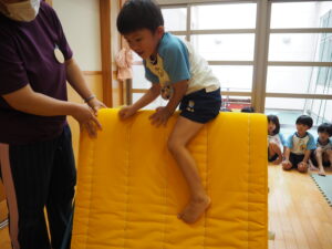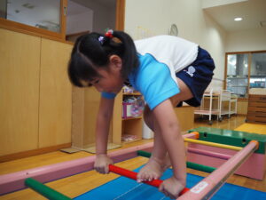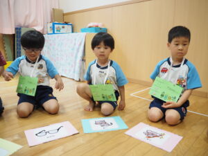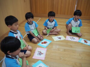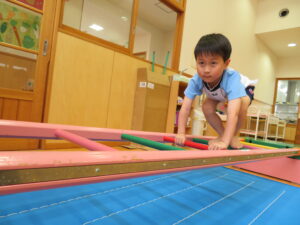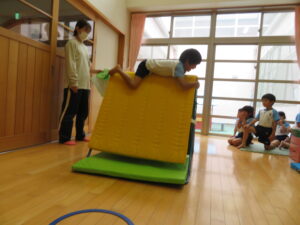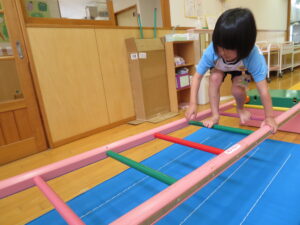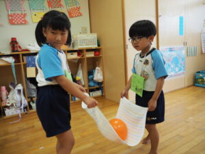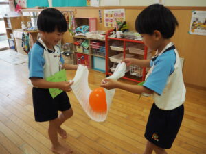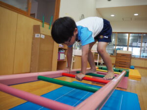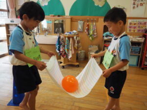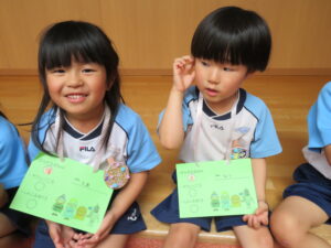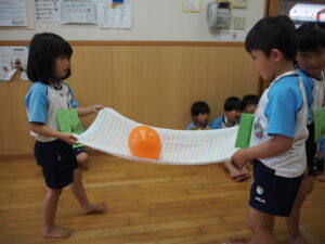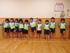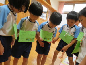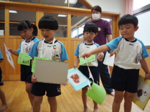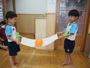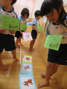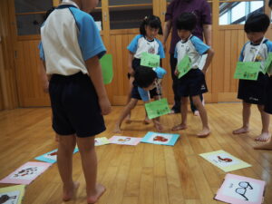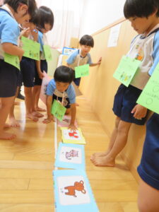 2025.05.16 お楽しみ保育②~宝探し~ 宝探しのミッションは3つ!「かんがえるちから」では、絵カードのことばをしりとりにしてつなげます。「やさしいこころ」では2人1組で風船リレーに挑戦。「しんじるゆうき」ではサーキットに挑戦。各コーナーで与えられたミッションをクリアしたらシールをゲット!【みんなで・なかよく】を合言葉に、ミッションクリアできるかな??(^-^) < 前の記事へ | 次の記事へ >