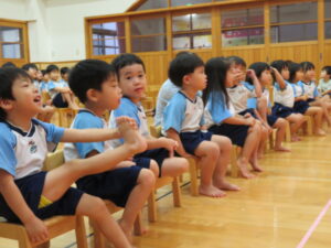 9月の誕生会がありました。8月のお休みしていたお友達も一緒にお祝いしましたよ。ぞう組さんは「しあわせなら手をたたこう」の歌を披露してくれました。先生からのお楽しみは、動物の足跡がたくさん出てくるお話♪「だれのあしあとかな??」と考えながら、楽しい時間を過ごしました。お誕生日おめでとう👑