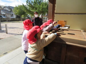 2026.01.22 初詣に行ったよ☆🐘(1/14) この日は阿羅波比神社⛩に初詣に行きました。おうちの財布に5円を入れてもらい、大事に歩きました。神社につくと順番にお賽銭を入れてお参り。両手をしっかり合わせしばらく目を閉じ、静かにお願い事をしていました☆今年もみんなが元気に過ごせますように…。 冬の空気は冷たいね~ 今日は神社に行くんだよね~ 横断歩道はしっかり手をあげて渡るよ。 ここだ~!着いたよ。 財布から5円を出して… 何をお願いしようかな…☆ < 前の記事へ | 次の記事へ >