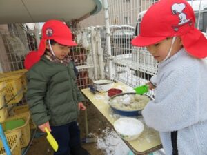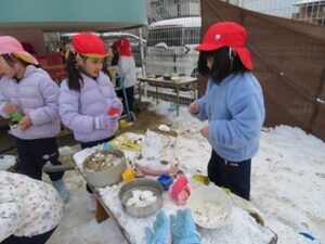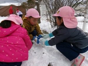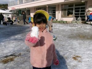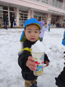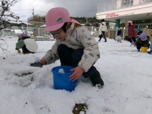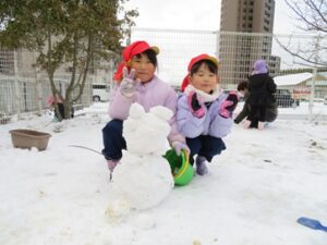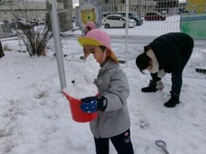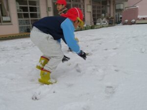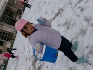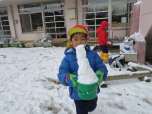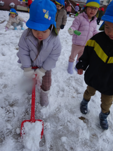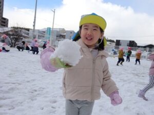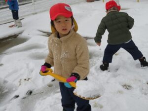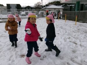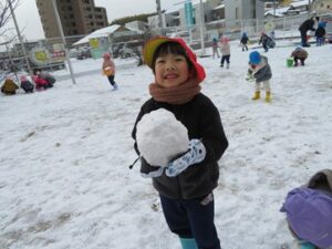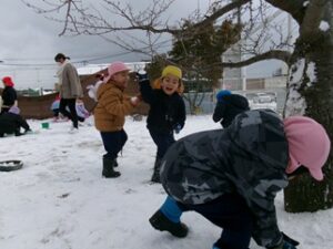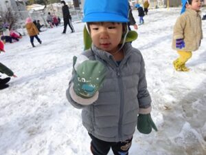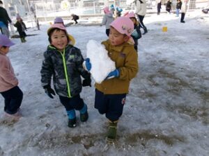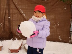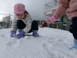 雪が積もりました⛄「外、出れる??」「雪で遊べる??」と朝からワクワクの子どもたち。雪のやみ間に外へ出ると、大喜びで雪遊びでしたよ。次はいつ雪遊び、できるかな…?(^^♪