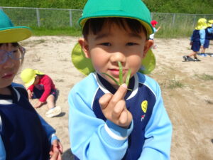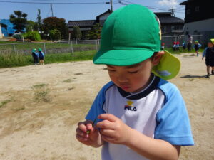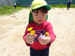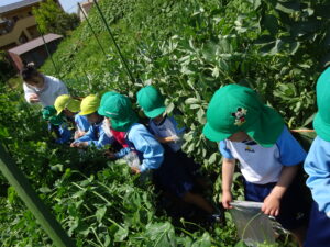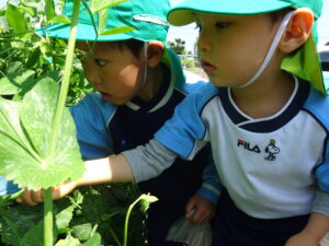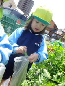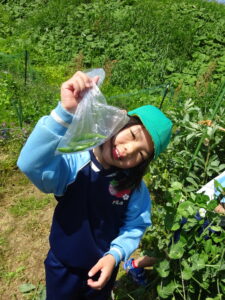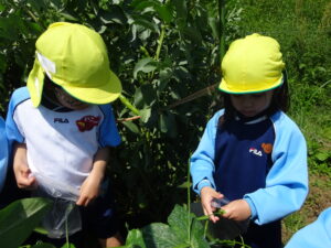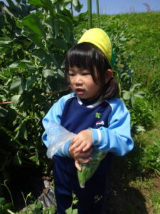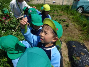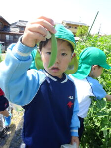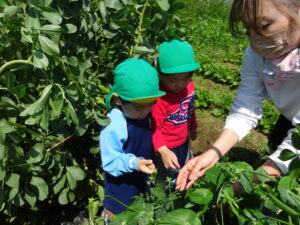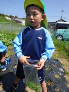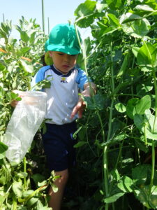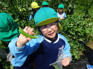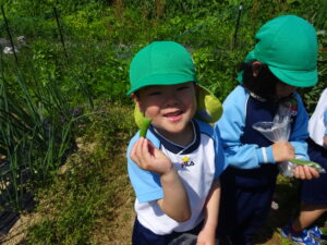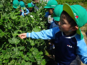 2023.05.11 スナップえんどうの収穫☆きりん組(5/2) 5月2日:畑にスナップえんどうの収穫に行った時の様子です。たくさんの葉っぱの間からお豆を見つけると「あった~」と、とっても嬉しそうに教えてくれていました。第2園庭でも遊び、たんぽぽやからすのえんどうなど、春の草花に親しみましたよ(^-^) < 前の記事へ | 次の記事へ >