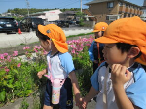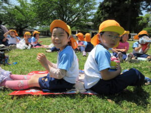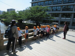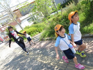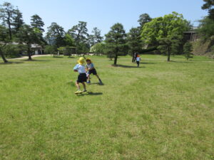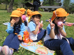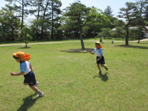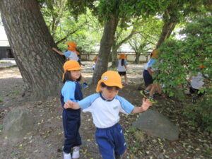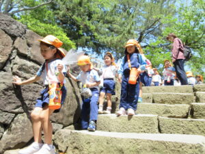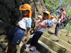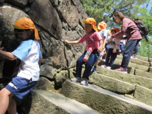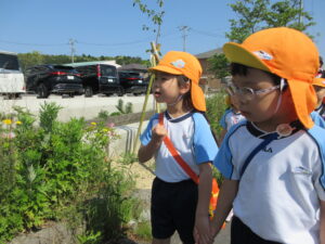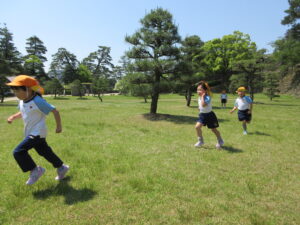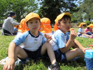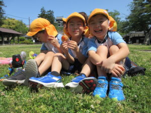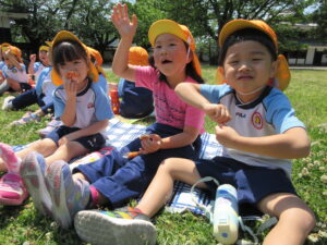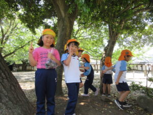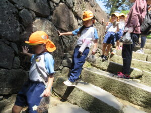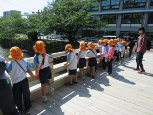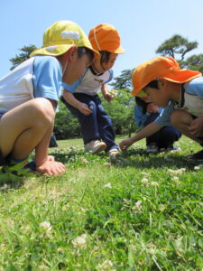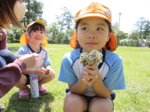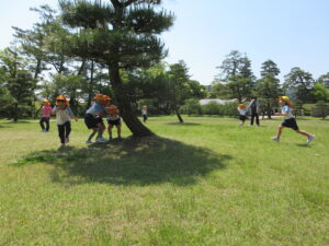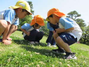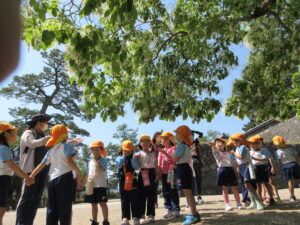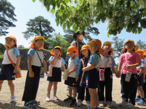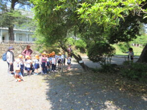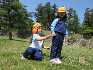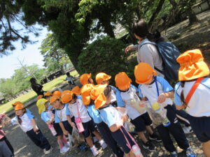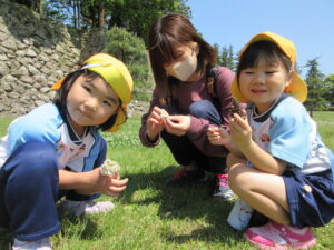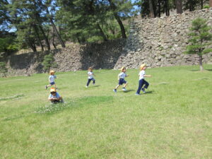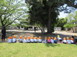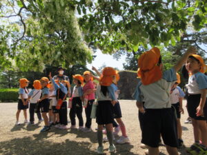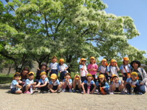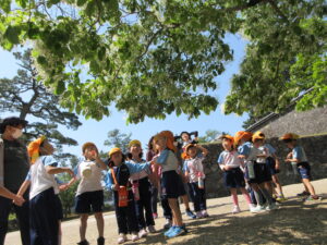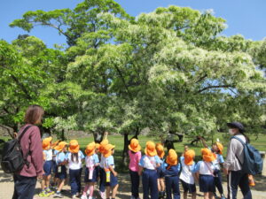 2023.05.11 なんじゃもんじゃの木in松江城☆ぞう組(5/11) 今日は城山へ『なんじゃもんじゃの木』を探しに行きました。きれいに咲いていた桜は「葉桜」になり、4月にお散歩に行った時との違いを見つけていた子どもたちです。芝生の広場でお花を探したり、鬼ごっこをしたり、お楽しみのおやつを食べたり…♡お目当ての『なんじゃもんじゃの木』も白い花がきれいに咲いていて、しばらく木を見上げて、みとれていましたよ(^-^) < 前の記事へ | 次の記事へ >